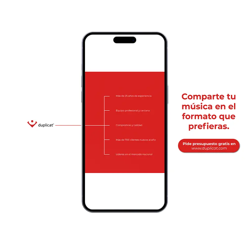 Este proyecto de diseño para DUPLICAT, empresa líder en la fabricación de vinilos, CDs y soluciones de distribución musical personalizada, supone la entrada estratégica de la marca en el ámbito de las redes sociales con una propuesta de posts informativos y de valor añadido. El objetivo principal es conectar con músicos independientes, sellos y profesionales del sector, abordando dudas frecuentes, aportando consejos útiles y posicionando a DUPLICAT como asesor experto que acompaña cada paso en la profesionalización musical.