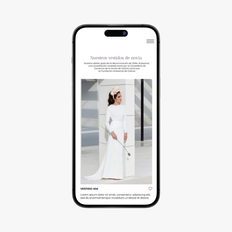 Proyecto de diseño web realizado por Dámaris Beltri, diseñadora gráfica freelance en Gijón, para Javier Quintela Atelier, un atelier de novias ubicado en A Coruña. El proyecto incluyó investigación de competencia, diseño completo en Figma con versiones desktop y mobile, y generación de vídeos de producto con inteligencia artificial.