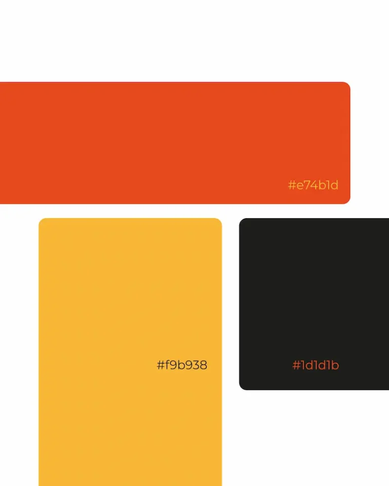 Para la paleta cromática mantuvimos un color naranja, combinado con el blanco y el negro que dan mucho contraste entre ellos.