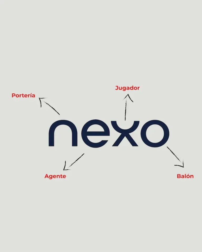 Para el diseño del logotipo de Nexo barajamos muchas alternativas distintas, teníamos claro que durante el proceso de diseño, no teníamos que caer en clichés. Descartamos todo lo que tuviera que ver directamente con el fútbol y nos centramos en buscar cómo representar lo que la marca quería transmitir: profesionalidad, trabajo, humildad, compromiso, honestidad, confianza y rendimiento.