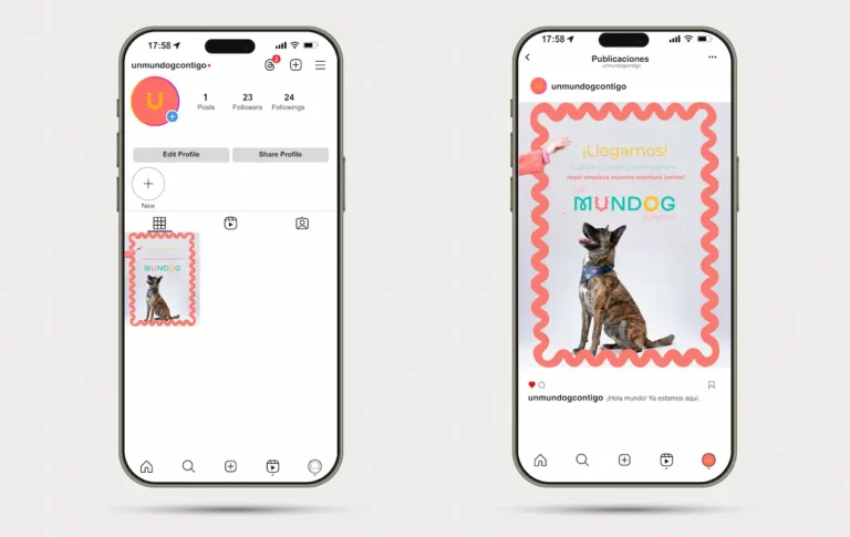 Proyecto multidisciplinar realizado por Dámaris Beltri, diseñadora gráfica freelance en Gijón, para Un Mundog Contigo, un proyecto de educación canina. El trabajo abarcó el diseño del logotipo, la web y la creación de contenido visual para redes sociales.